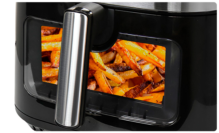 Esta freidora sin aceite Nappo de 1800W y capacidad de 9L es perfecta para preparar tus comidas favoritas. Su práctica ventana de visualización transparente te permite controlar el estado de cocción de tus alimentos sin la necesidad de abrir la freidora. Sus 10 funciones de cocción prestablecidas, temperatura y temporizador ajustables te permiten preparar bocadillos saludables con solo un toque. Además, cuenta con tecnología Fry Force 360º, display digital, luz interior, rejilla y pinza metálica.