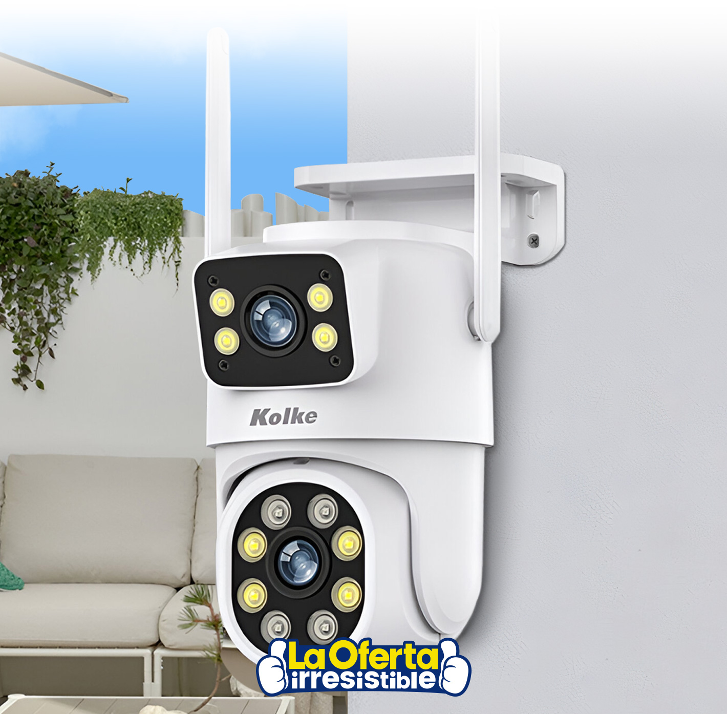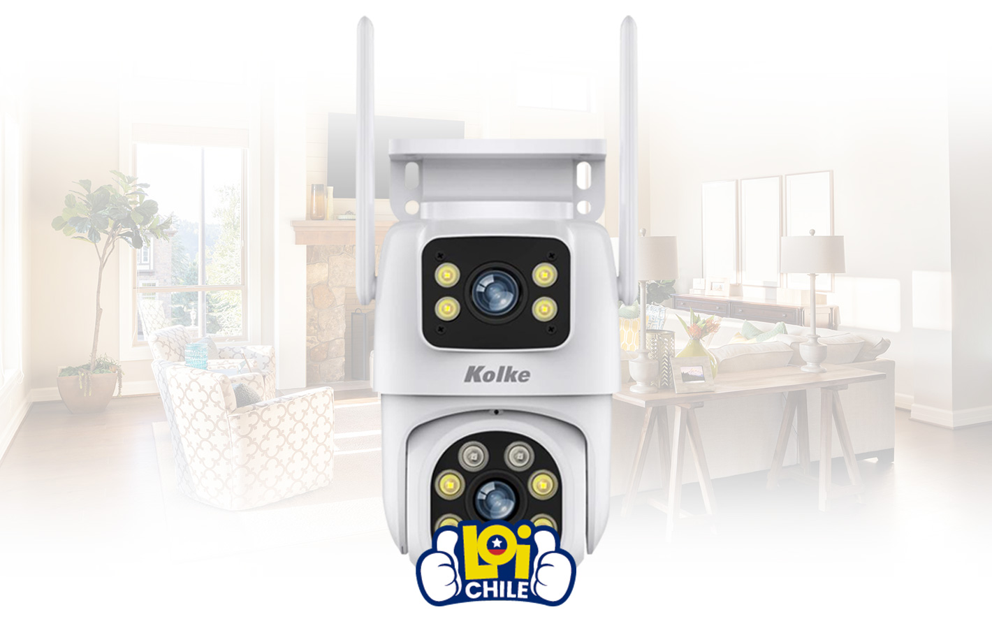 La cámara de seguridad Kolke de doble lente simultáneo es la solución perfecta para proteger tu hogar o negocio. Con una cámara dinámica y una cámara estática de 3.0MP cada una, puedes obtener una conexión coordinada para una vigilancia completa. Posee doble iluminación LED y visión nocturna, además es apta para uso tanto en interiores como en exteriores, garantizando una vigilancia efectiva en todo momento. Cuenta con alarma AI para alertarte ante cualquier movimiento, también soporta monitoreo remoto desde cualquier dispositivo y tiene WiFi 2.4G. Gracias a su parlante y micrófono integrados te permiten comunicarte de forma bidireccional brindándote una completa seguridad para tu hogar.Disponible en: