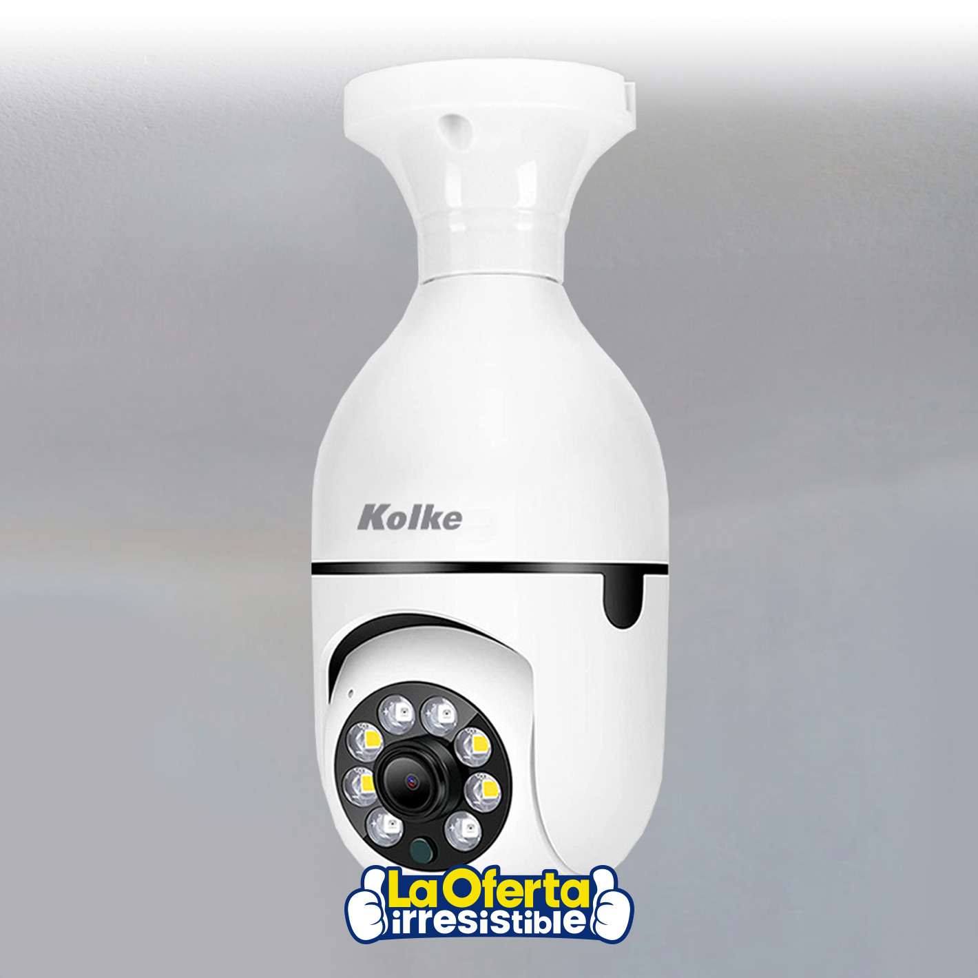 Cámara de Seguridad KOLKE Motorizada PTZ Rotación de 355° 3.0MP Inalámbrica WiFi Dual Band 2,4GH/5G App Celular Visión Nocturna a Color y Audio Bidireccional, Conector E27