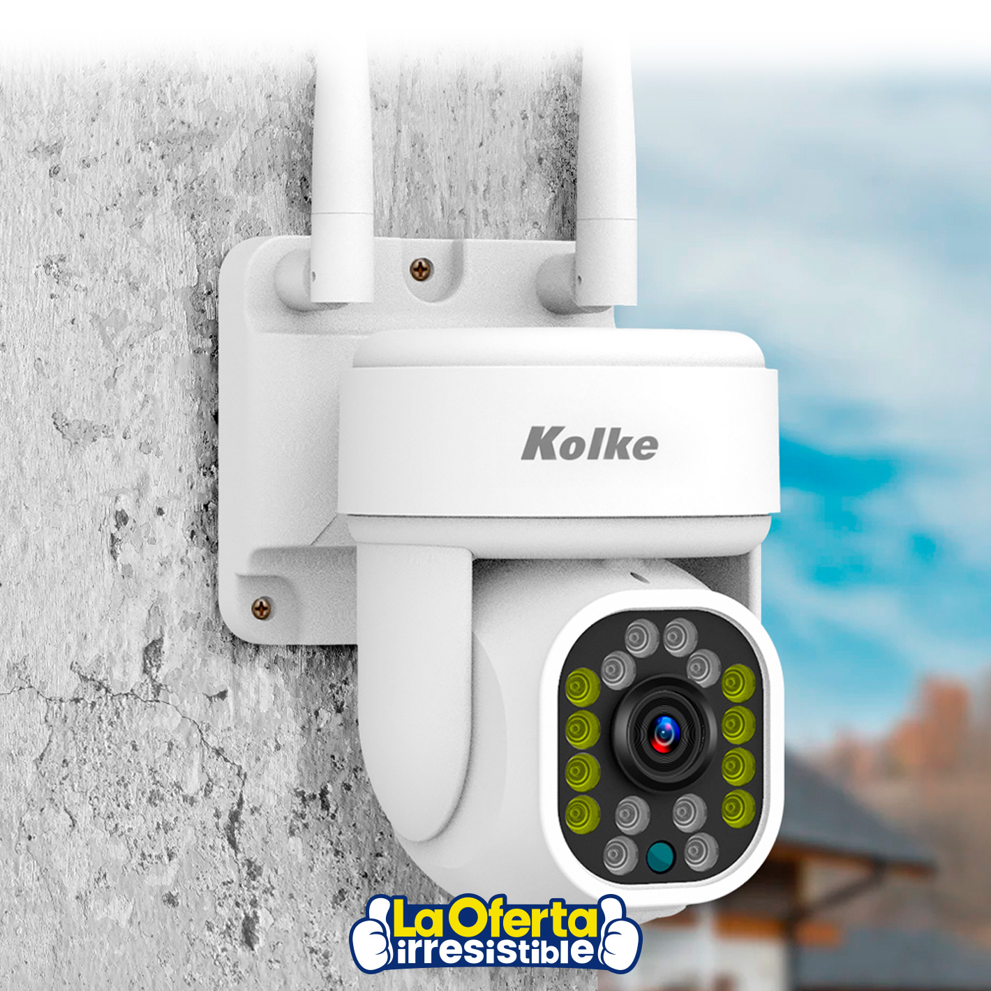 La cámara de seguridad KOLKE con resolución de 3MP y visión nocturna a color es la solución perfecta para proteger tu hogar o negocio. Con su visión PTZ y rotación horizontal de 355° y vertical de 90°, puedes monitorear cada rincón con facilidad. Además, cuenta con doble iluminación gracias a sus 8 LED IR integrados y 8 LED de luz blanca, que garantizan una visión clara incluso en las condiciones de iluminación más difíciles. Su lente de 3,6mm y tecnología HDR permiten obtener imágenes nítidas y detalladas en todo momento. Gracias a que posee detección de movimiento y detección de figura humanoide IA, brinda una mayor seguridad.Disponible en: