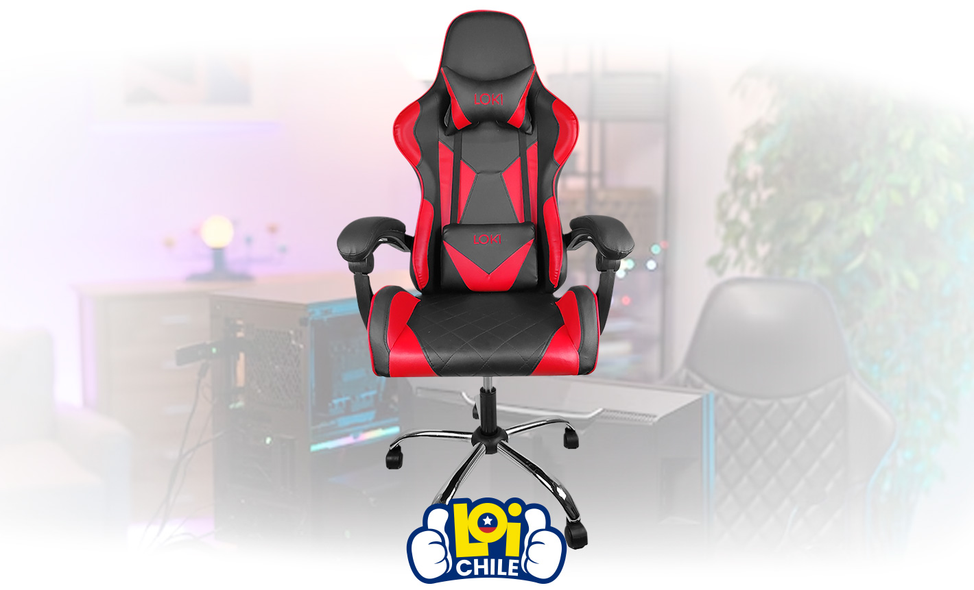 Silla Gamer EMPOLi LOKI con almohadón lumbar y cervical, elevación de gas clase 3 y realizada en materiales de la más alta calidad.