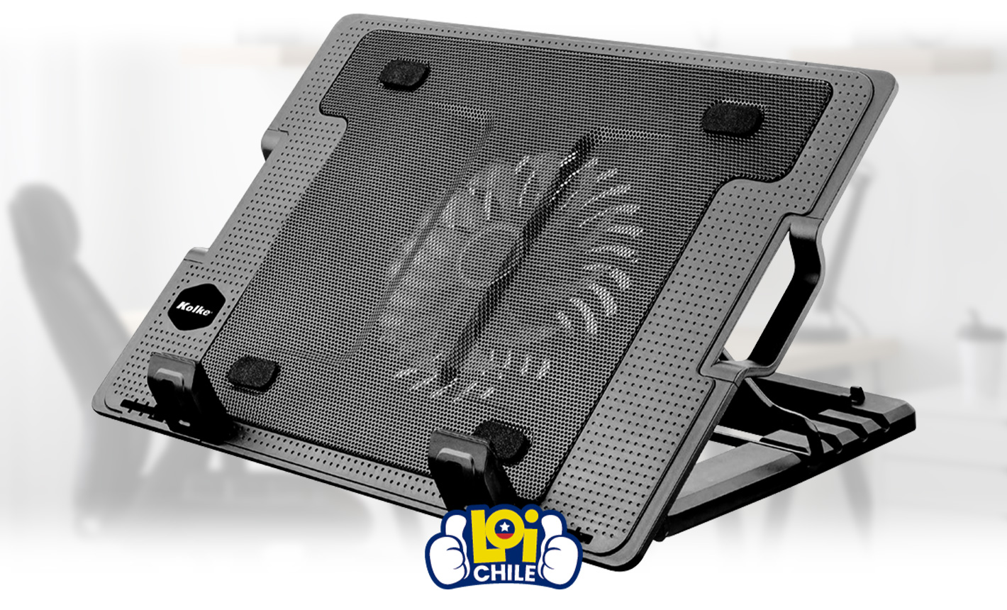 Soporte Cooler KOLKE para Notebook de hasta 17” Ventilador Silencioso Altura Regulable 2 Puertos USB