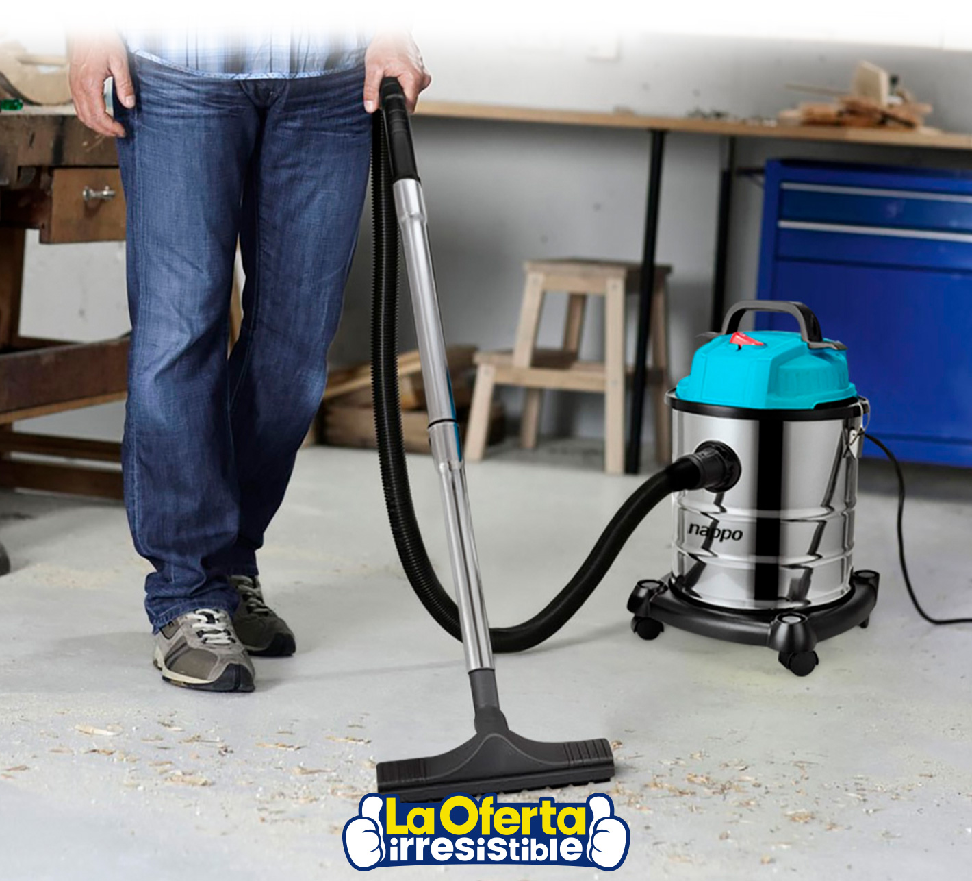 Esta aspiradora industrial NAPPO con triple función permite aspirar pisos, alfombras y soplar hojas con comodidad gracias a sus 1400W de potencia. Dispone de 20 litros de capacidad y un diseño ligero con asas que facilitan su traslado. Cuenta también con un mango regulable que le permite llegar a más lugares y ruedas giratorias que facilitan el movimiento en cualquier dirección.Disponible en: