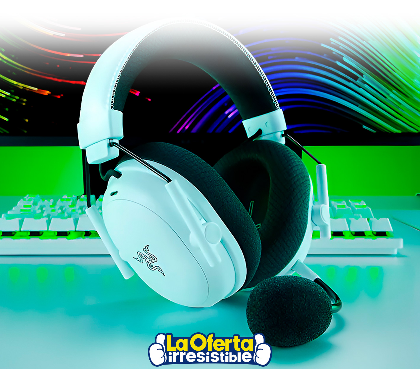 Audífonos Razer Blackshark V3 Pro con driver de 50mm y micrófono extraíble de banda completa - Blanco