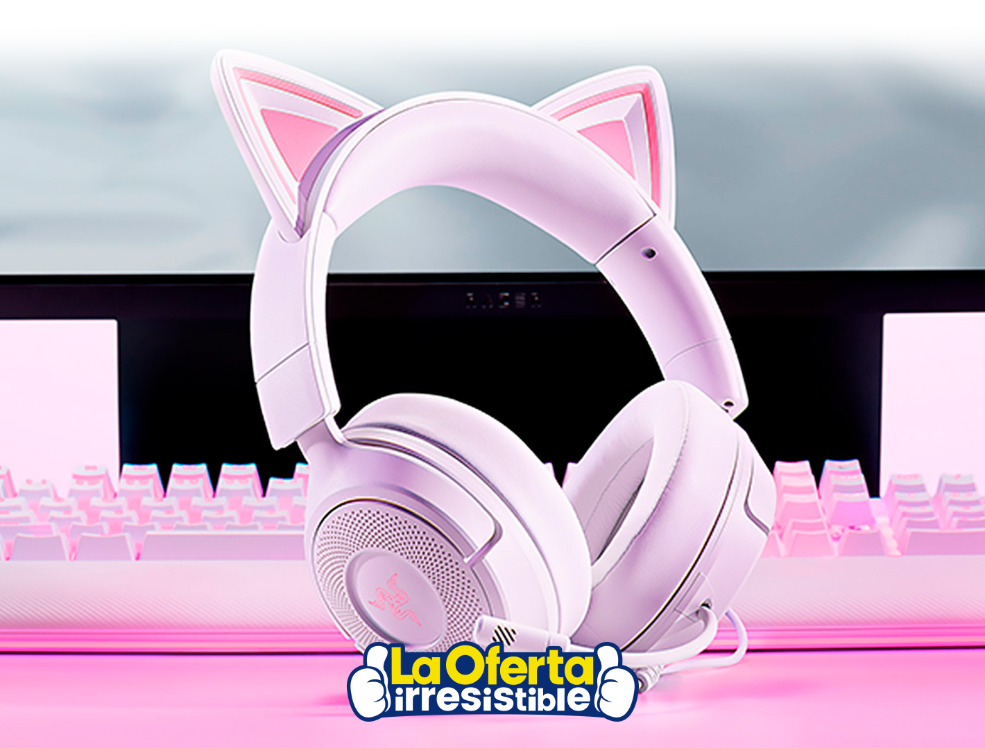 Los Razer Kraken Kitty V3 X combinan rendimiento gamer y un diseño icónico para que vivas cada partida con máxima inmersión. Equipados con drivers de 40mm Razer TriForce, ofrecen un audio potente y definido, con graves profundos, medios equilibrados y agudos claros para escuchar cada detalle. Incorporan sonido envolvente 7.1, ideal para ubicar a tus rivales y reaccionar más rápido en juegos competitivos. Su impedancia de 32Ω y sensibilidad de 98dBSPL/mW garantizan un rendimiento sólido y una experiencia de sonido intensa en todo momento. Además, incluyen micrófono cardioide Razer HyperClear unidireccional, diseñado para capturar tu voz con claridad y reducir el ruido ambiente, perfecto para comunicarte con tu equipo sin interrupciones. Su conexión cableada de 3,5mm asegura compatibilidad y una conexión estable para jugar sin latencia.Disponible en: