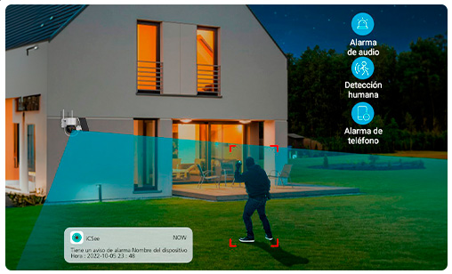 • La Cámara de Seguridad KOLKE con resolución de 4MP es una solución avanzada para vigilancia tanto en interiores como en exteriores. Está equipada con visión nocturna a color, lo que permite monitorear espacios incluso en condiciones de poca luz sin perder calidad de imagen. Cuenta con una lente de 3,6mm que ofrece un ángulo de visión amplio y claro. Integra un sensor de inducción corporal infrarrojo PIR que, combinado con la tecnología de detección de forma humana mediante inteligencia artificial, permite identificar movimientos reales y reducir falsas alarmas. Dispone de un sistema de alarma que se activa automáticamente ante movimientos detectados y cuenta con audio bidireccional, lo que permite escuchar y hablar en tiempo real desde la aplicación móvil. Además su diseño robusto con certificación de resistencia al agua IP66 garantiza un funcionamiento óptimo bajo diversas condiciones climáticas.