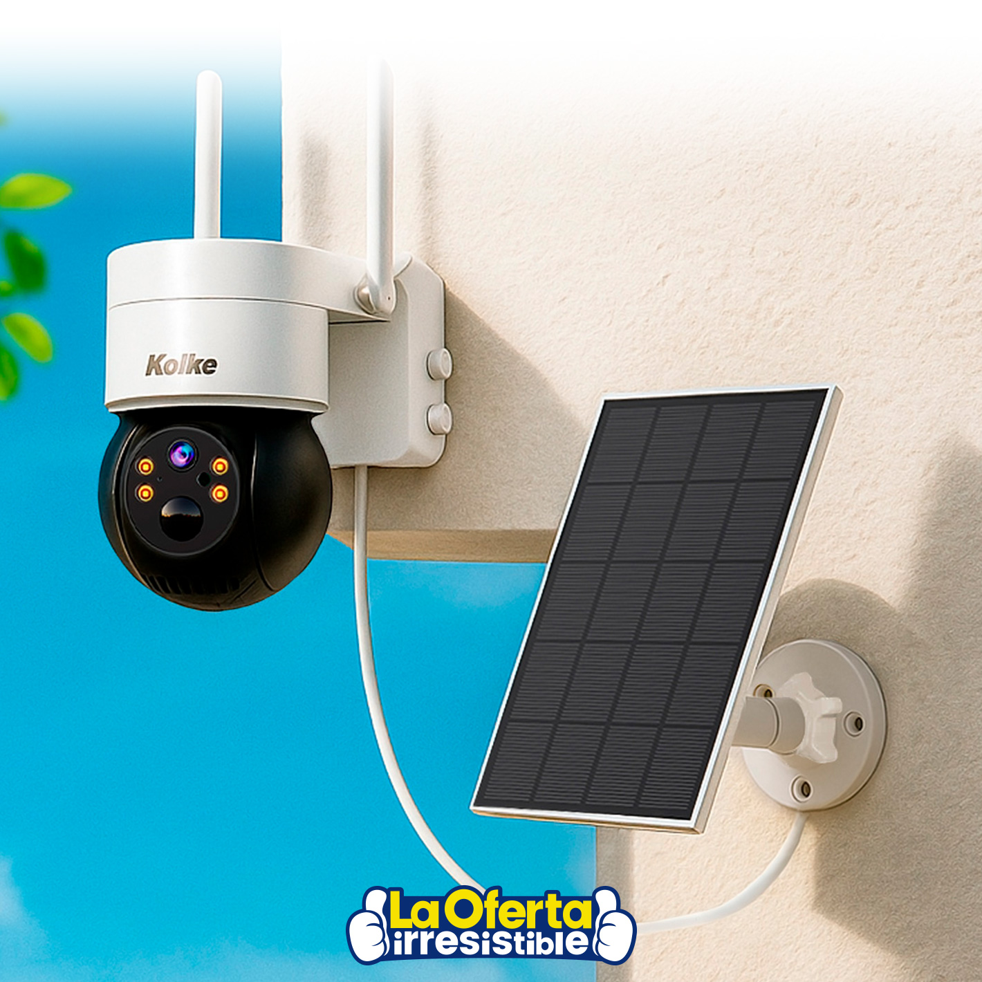 • Este producto: Cámara de Seguridad KOLKE Motorizada PTZ 4.0MP WIFI 100% Inalámbrica con Batería Recargable y Panel Solar de 5W, Visión Nocturna a Color, Rotación 355º, App Celular iCSee - $ 39.990