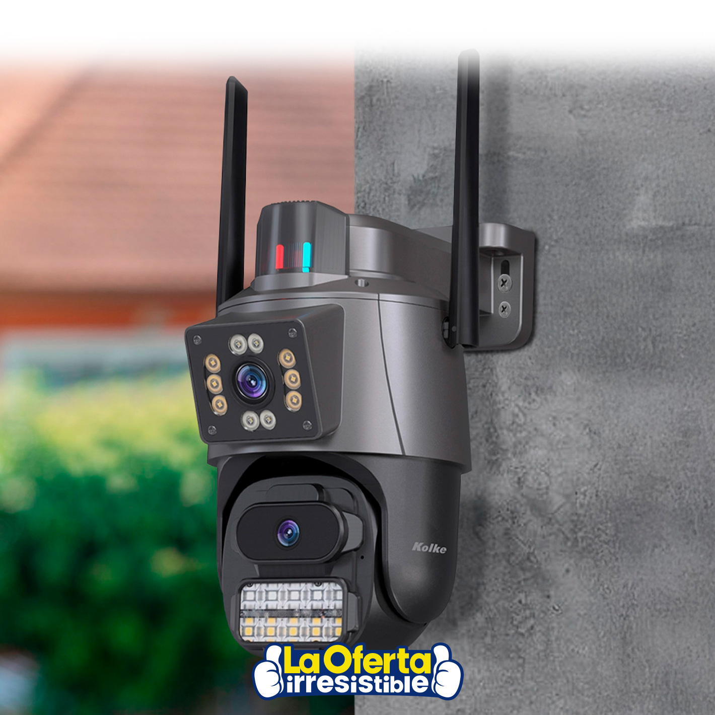Cámara de Seguridad KOLKE Doble Lente Simultáneo 3.0MP Motorizado PTZ y 3.0MP Estático, con Alarma AI, Visión Nocturna y Audio Bidireccional, Inalámbrica WIFI App Celular