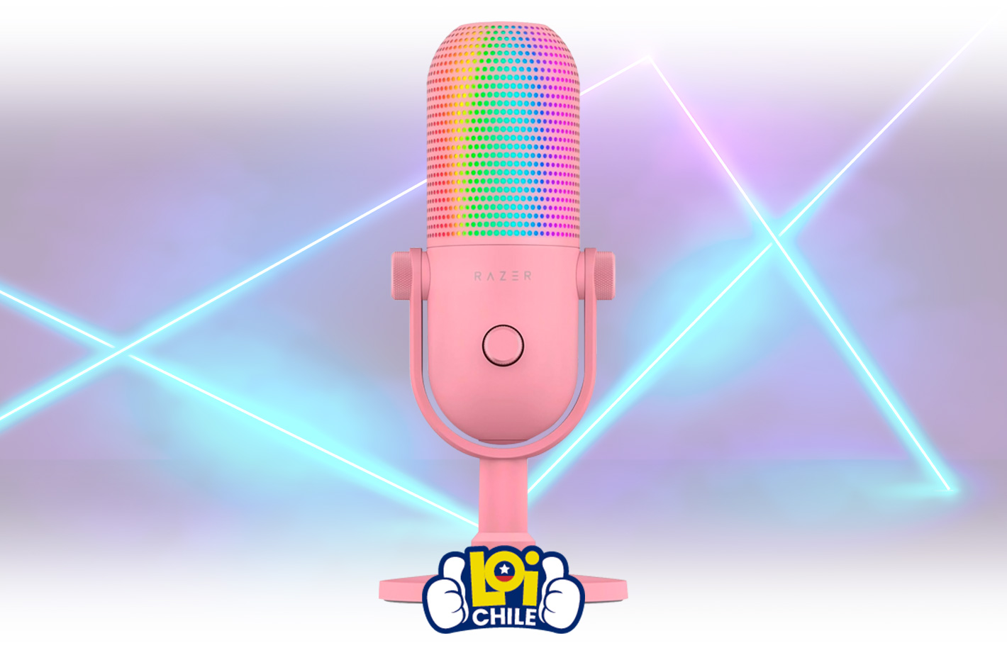 Micrófono Razer Seiren V3 Chroma con sensibilidad -34dB, iluminación RGB y sensor de pulsación - Rosa