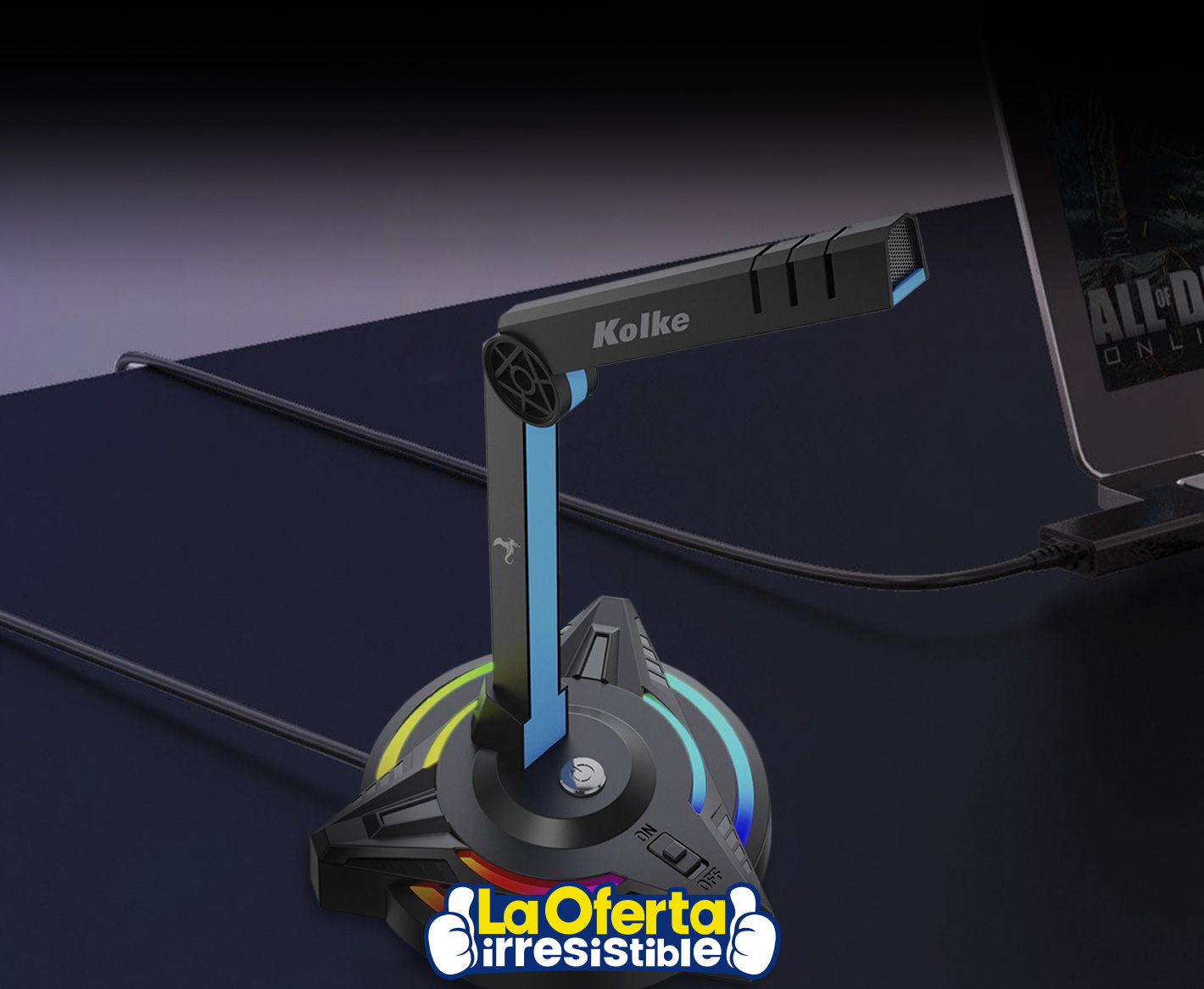 Micrófono Kolke RGB omnidireccional, plegable con luces RGB y luz blanca
