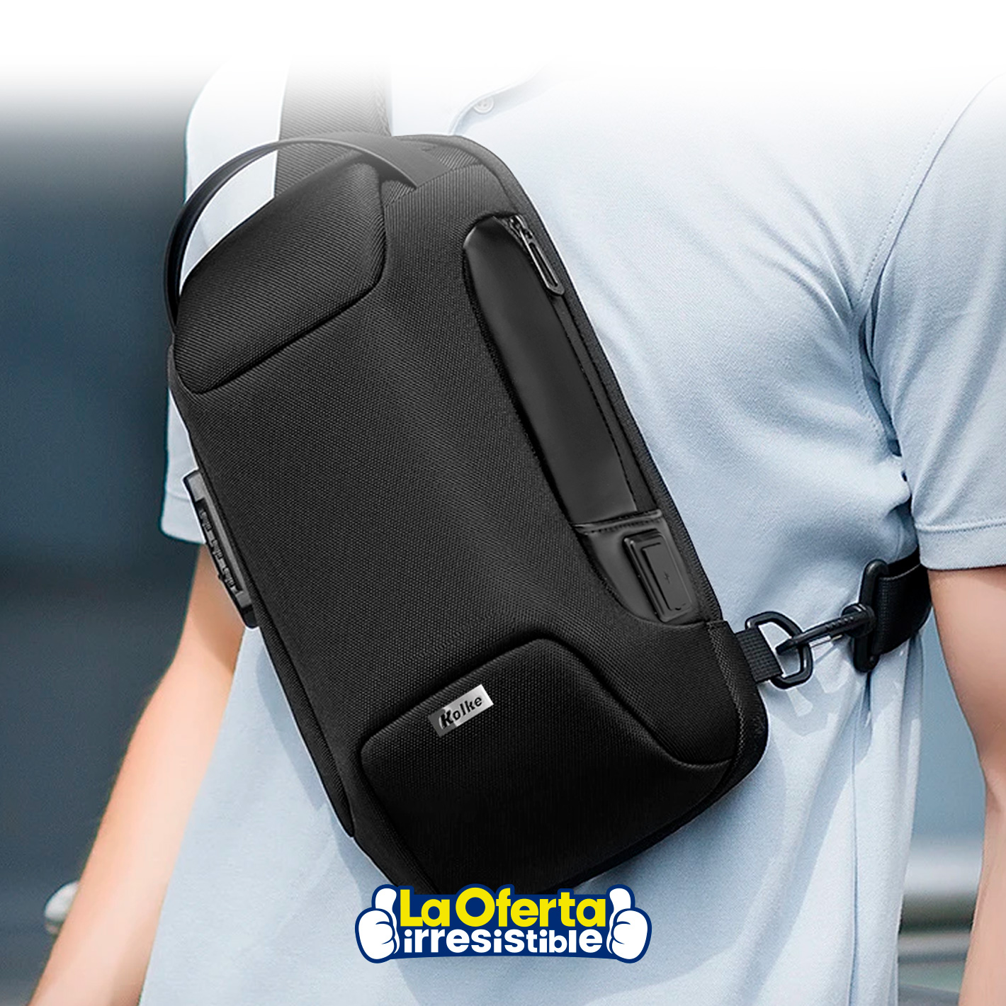 Mochila Bandolera Kolke Cruzada con Candado y Tela Waterproof