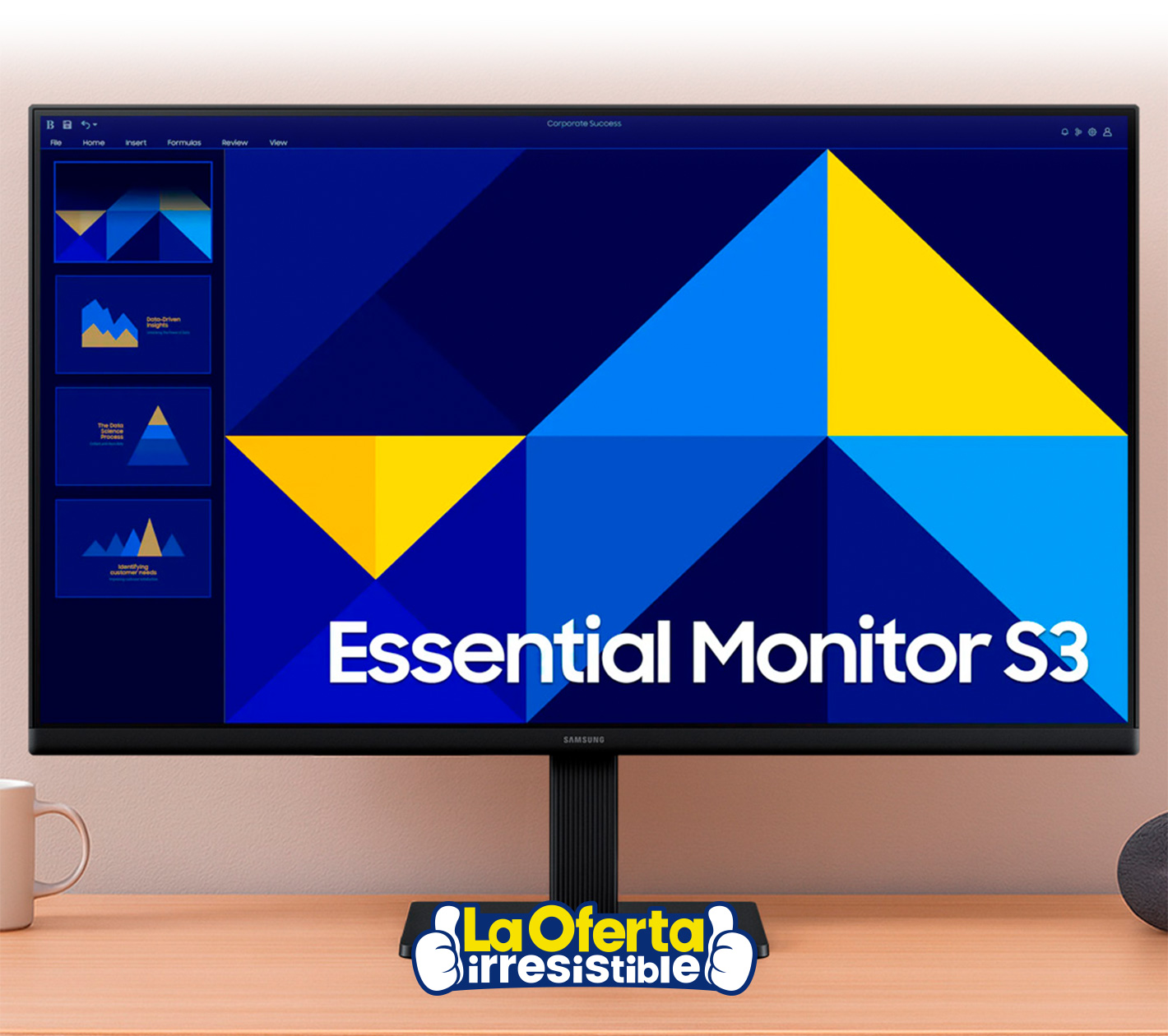 Este monitor HP Samsung Essential S3 de 27" combina un diseño ultradelgado y moderno con un rendimiento visual de alta calidad, ideal para el trabajo, estudio o entretenimiento. Su resolución Full HD y panel IPS, ofrece una calidad de imágenes nítidas y colores vibrantes, brindando una experiencia inmersiva desde cualquier ángulo gracias a su amplio panel. Con un tiempo de respuesta de 5ms, es perfecto para disfrutar de videos fluidos o tareas exigentes. Además, incorpora tecnologías que cuidan tu bienestar como Flicker Free, que elimina el parpadeo para reducir la fatiga visual y Eye Saver, que protege tus ojos de la luz azul sin comprometer la calidad de imagen.Disponible en: