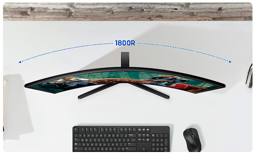 - Una experiencia visual más inmersiva. La pantalla curva se adapta a tu campo de visión, creando una vista más amplia que mejora la percepción de profundidad y minimiza las distracciones del entorno, ayudándote a mantener el enfoque de lo que ves en pantalla.