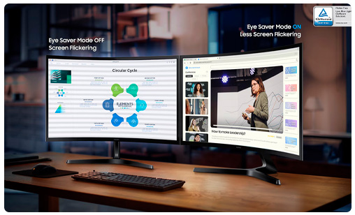 - Protege tu vista y mantén la comodidad, incluso en sesiones prolongadas. La tecnología avanzada para el cuidado de los ojos, certificada por TÜV, reduce la fatiga ocular al minimizar la luz azul y el parpadeo de la pantalla.