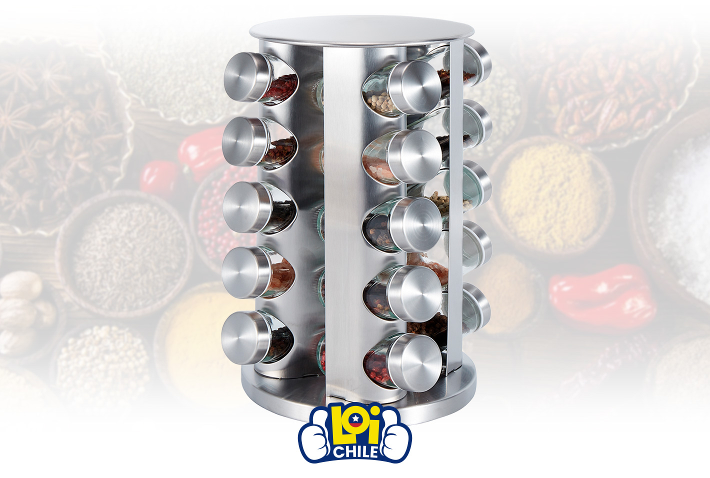 • Este producto: Set de 20 Especieros CROiX con Base Giratoria de Acero Inoxidable y Frascos de Vidrio - $ 9.490
