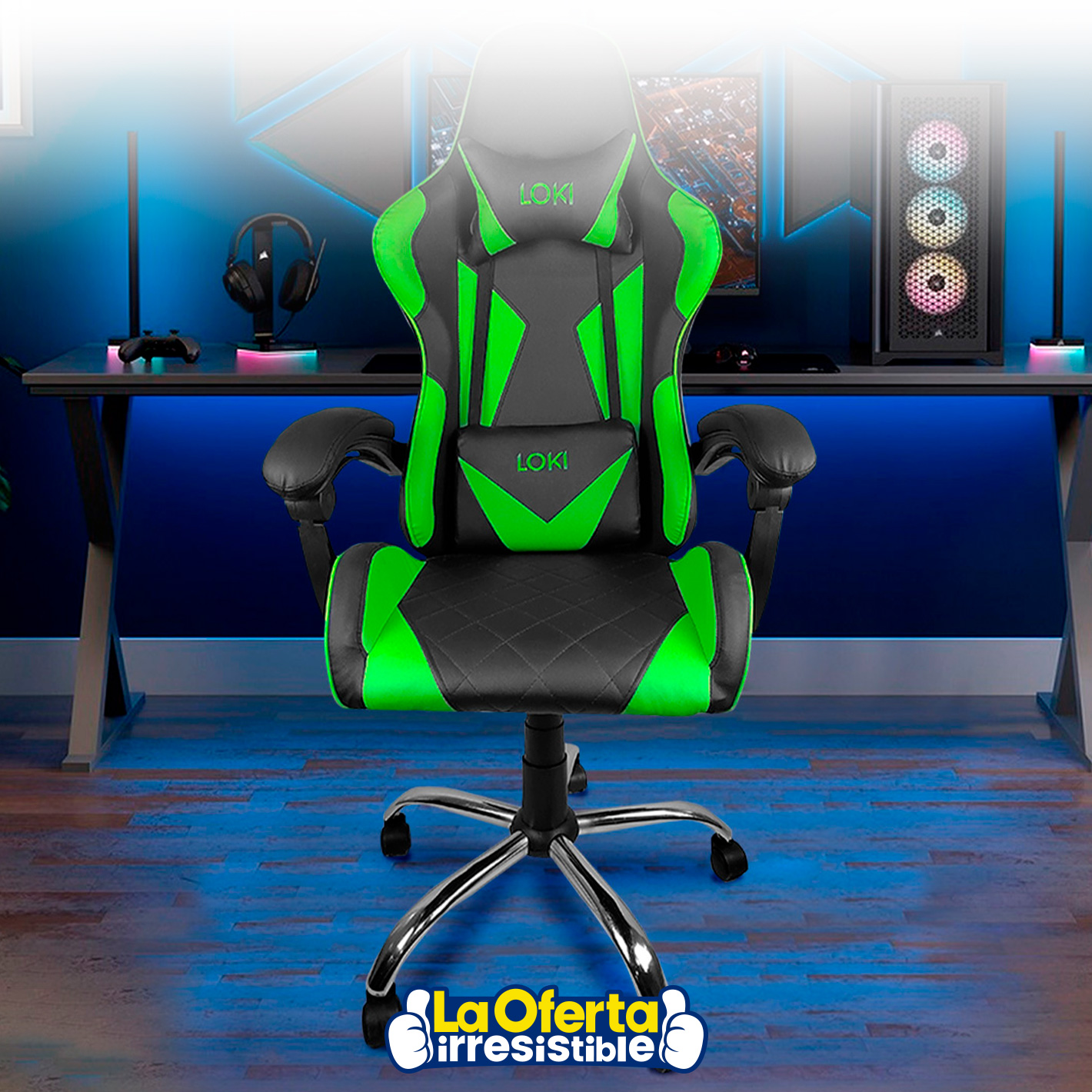 Silla Gamer EMPOLi LOKI EM-GC01 con Almohadón Lumbar y Cervical - Verde